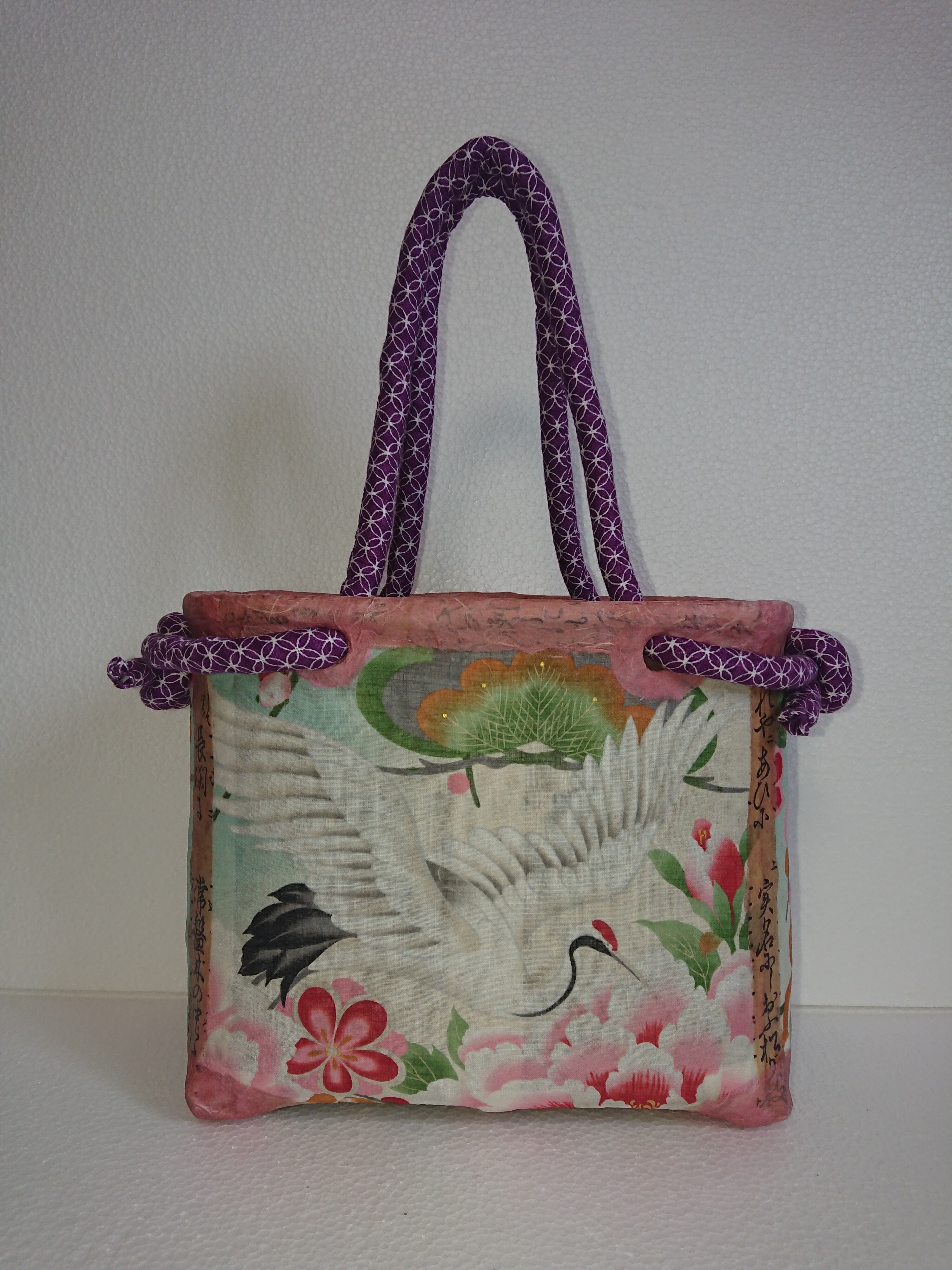 ●表(鶴)裏(花)横(梅花)緑(ピンク色)持ち手(紫色)