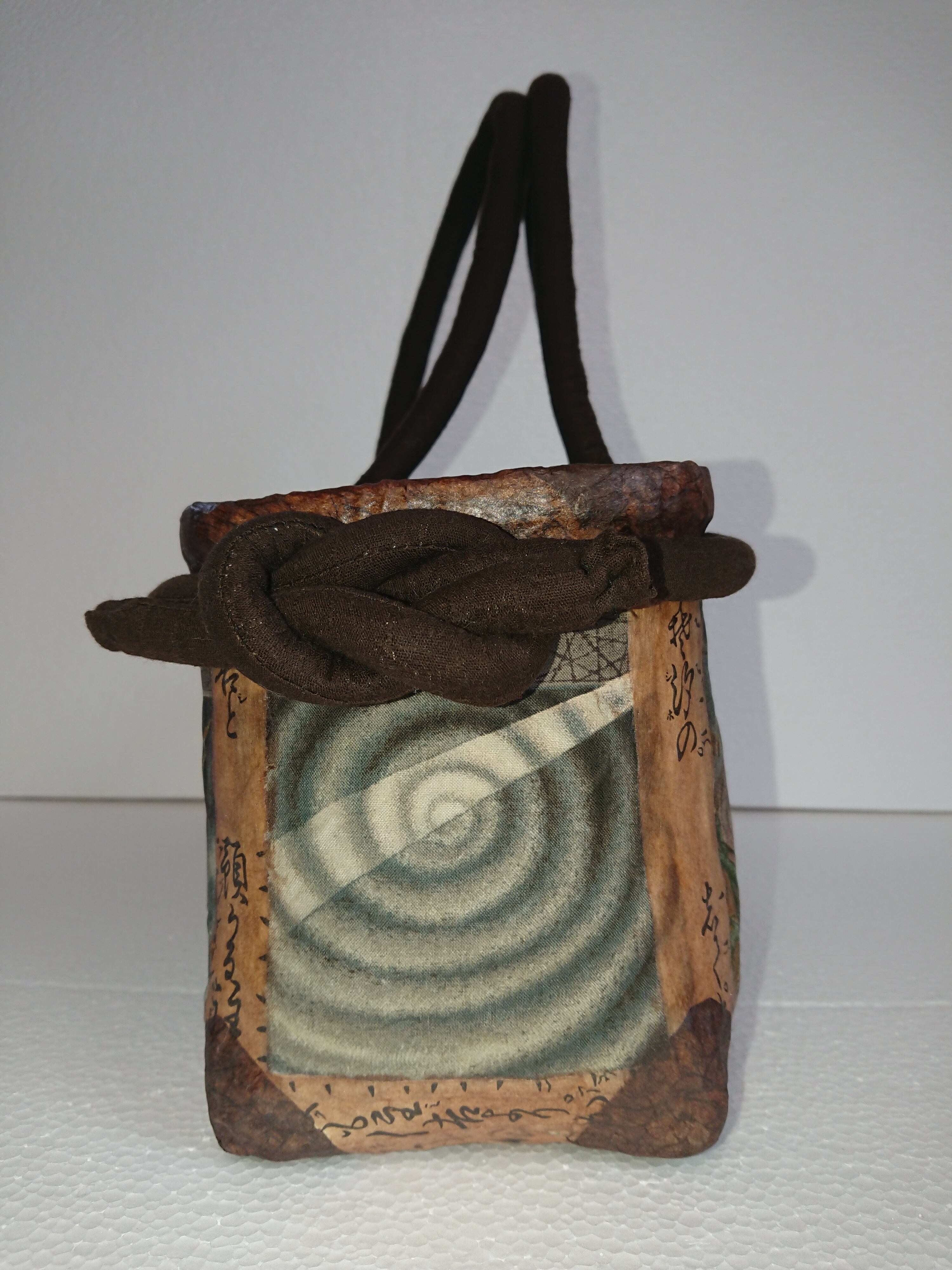 ●竹カゴに長襦袢や和紙を張りって、和紙の所は柿渋で仕上げています!